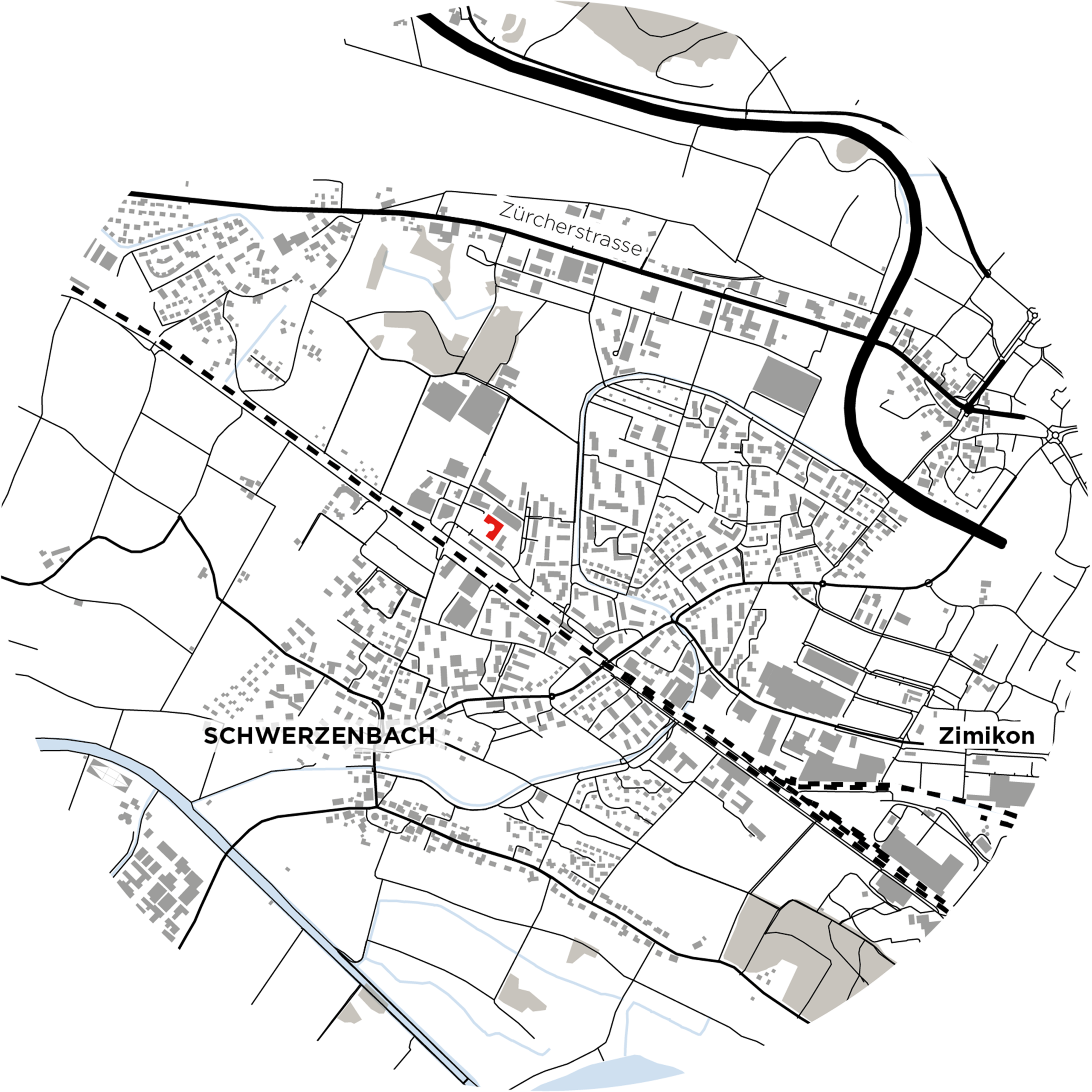 Der Anschluss an die Oberlandautobahn ist nur wenige Fahrminuten entfernt und der Bahnhof Schwerzenbach liegt direkt vor der Haustür. Von hier führen zahlreiche S-Bahn-Verbindungen in Richtung Uster, Schaffhausen, Affoltern a. A. und Hinwil. Rund um den Bahnhof und im nahen Volkiland finden sich zahlreiche Einkaufs- und Verpflegungsmöglichkeiten.